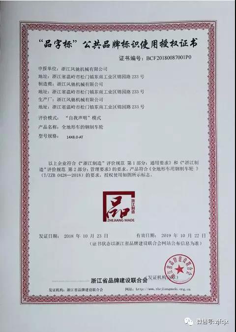 2018年10月榮獲浙江省品牌建設(shè)聯(lián)合會頒發(fā)的“品字標(biāo)”公共品牌標(biāo)識使用授權(quán)證書